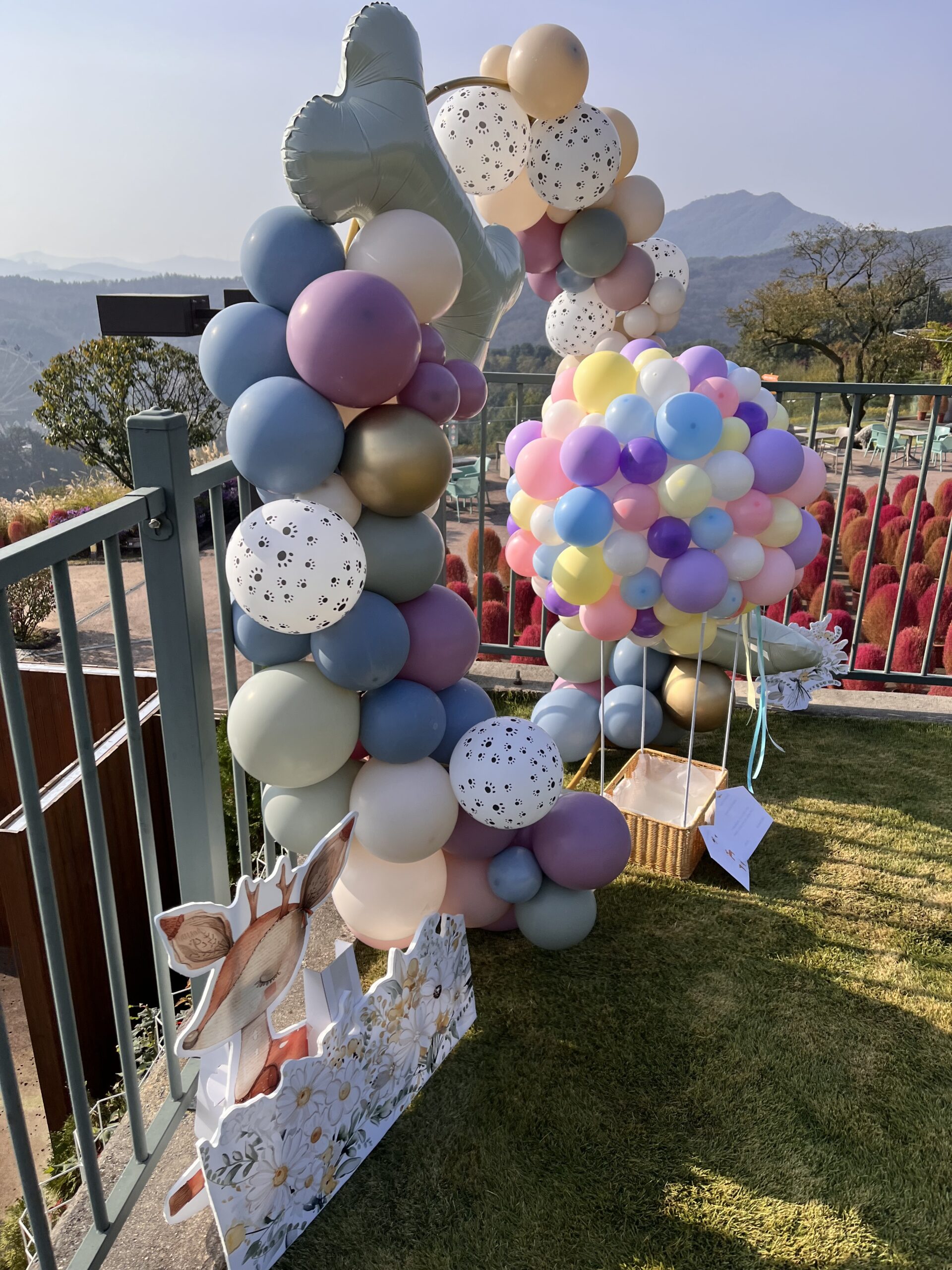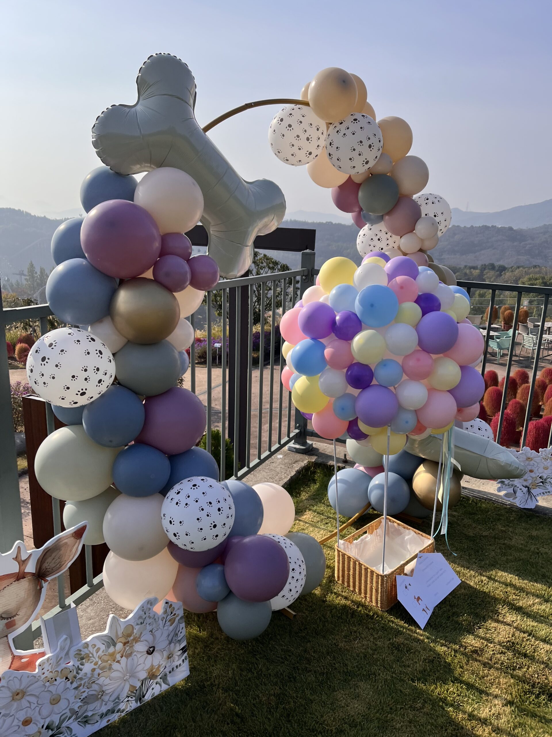 소형,중형견이 편하게 들어가 바구니에서 열기구를 타고 추억사진을 남길 수 있는 열기구 포토존 입니다.
