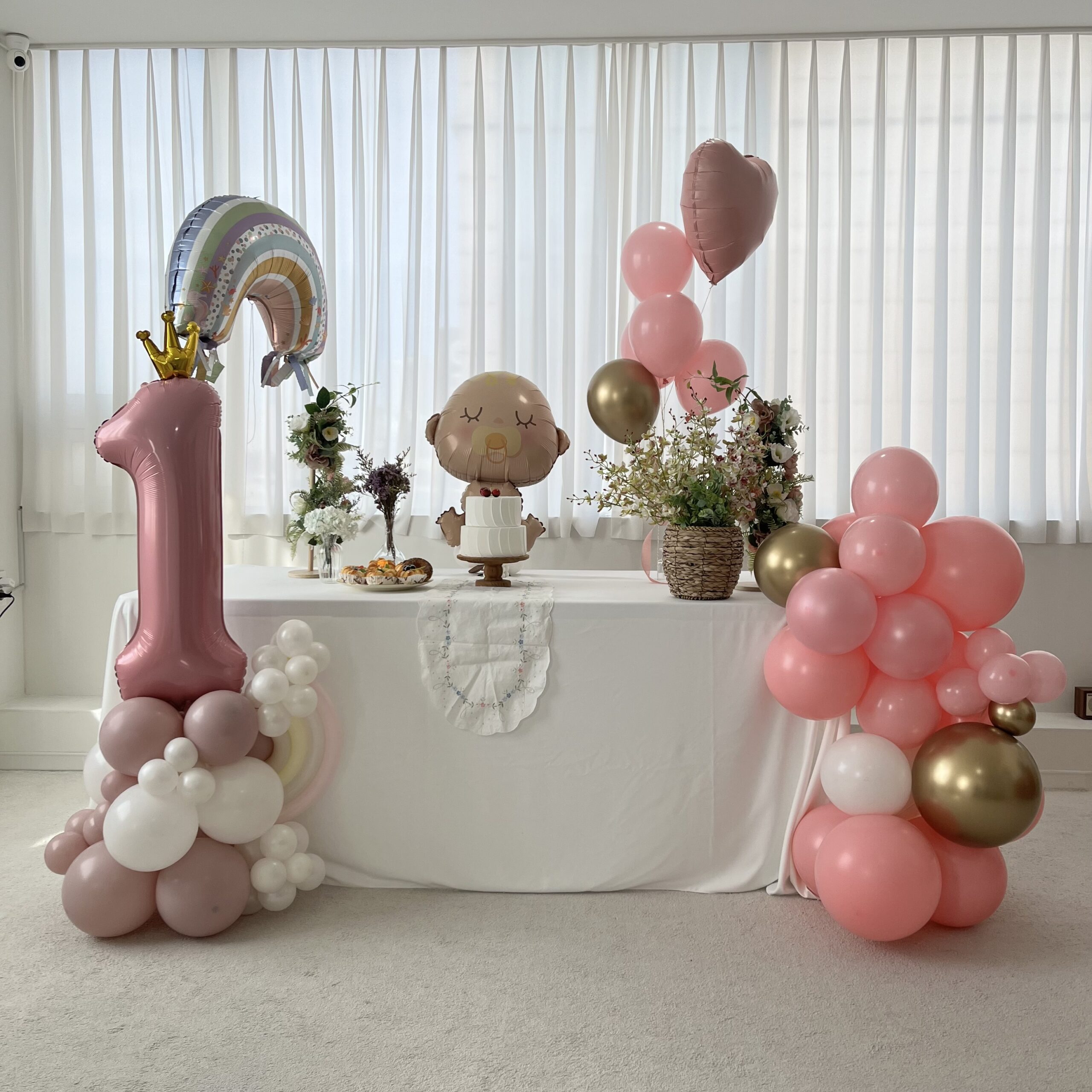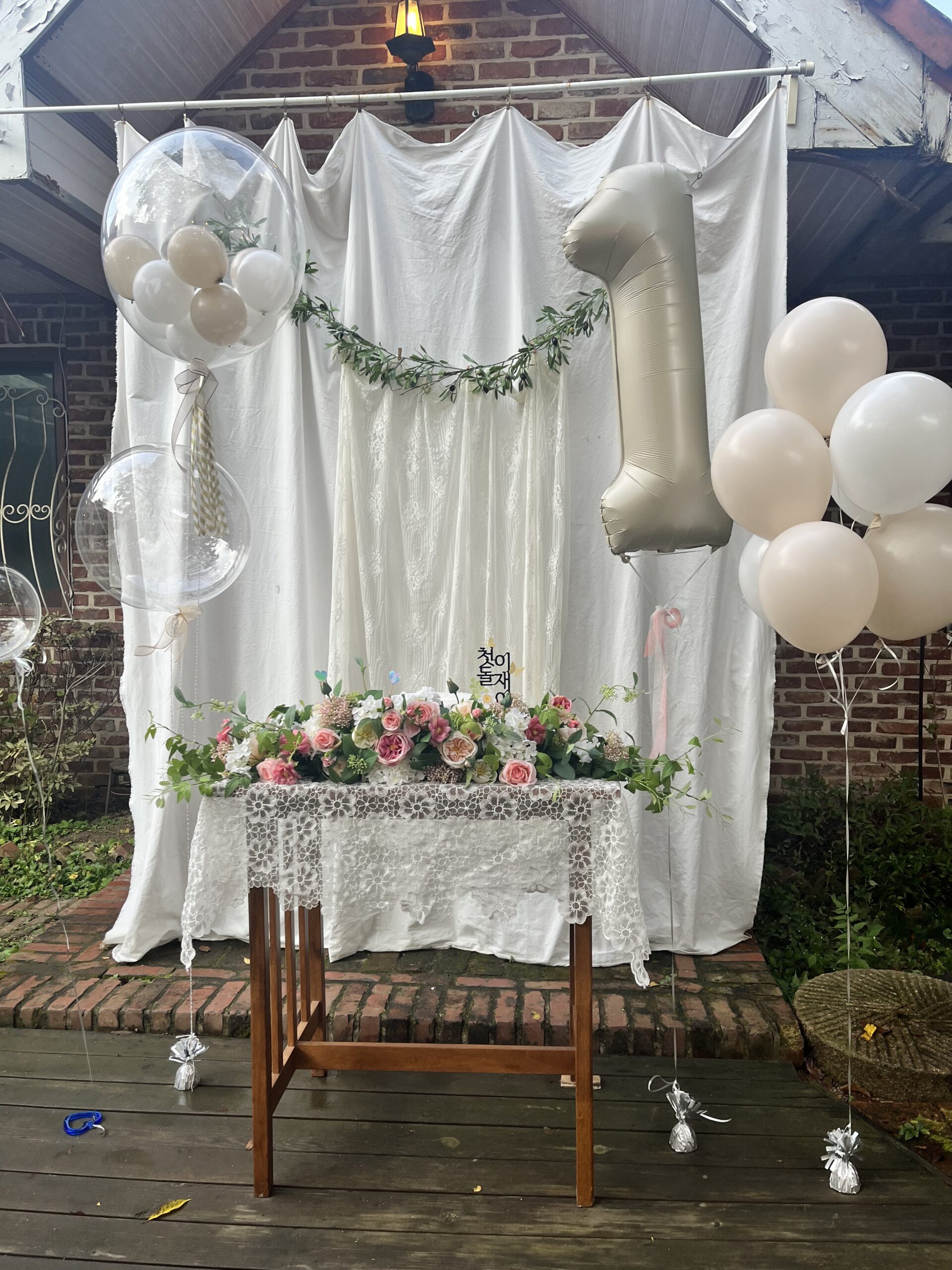 야외에서 장소를 대관하시고, 출장 부페를 셋티하신 고객님께서는 기존 공간대여에 추가로 풍선 셋트를 커스텀 해서 분위기를 꾸미셨습니다.