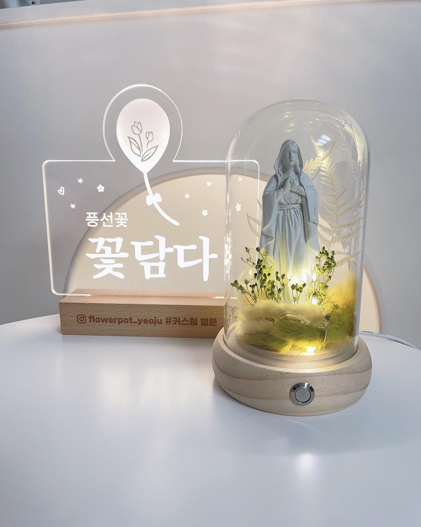 성물로 제작된 마리아상 무드등입니다. 너무 고급스럽고 성스러운 성물로서 은총가득한 선물을 제작해 드립니다.